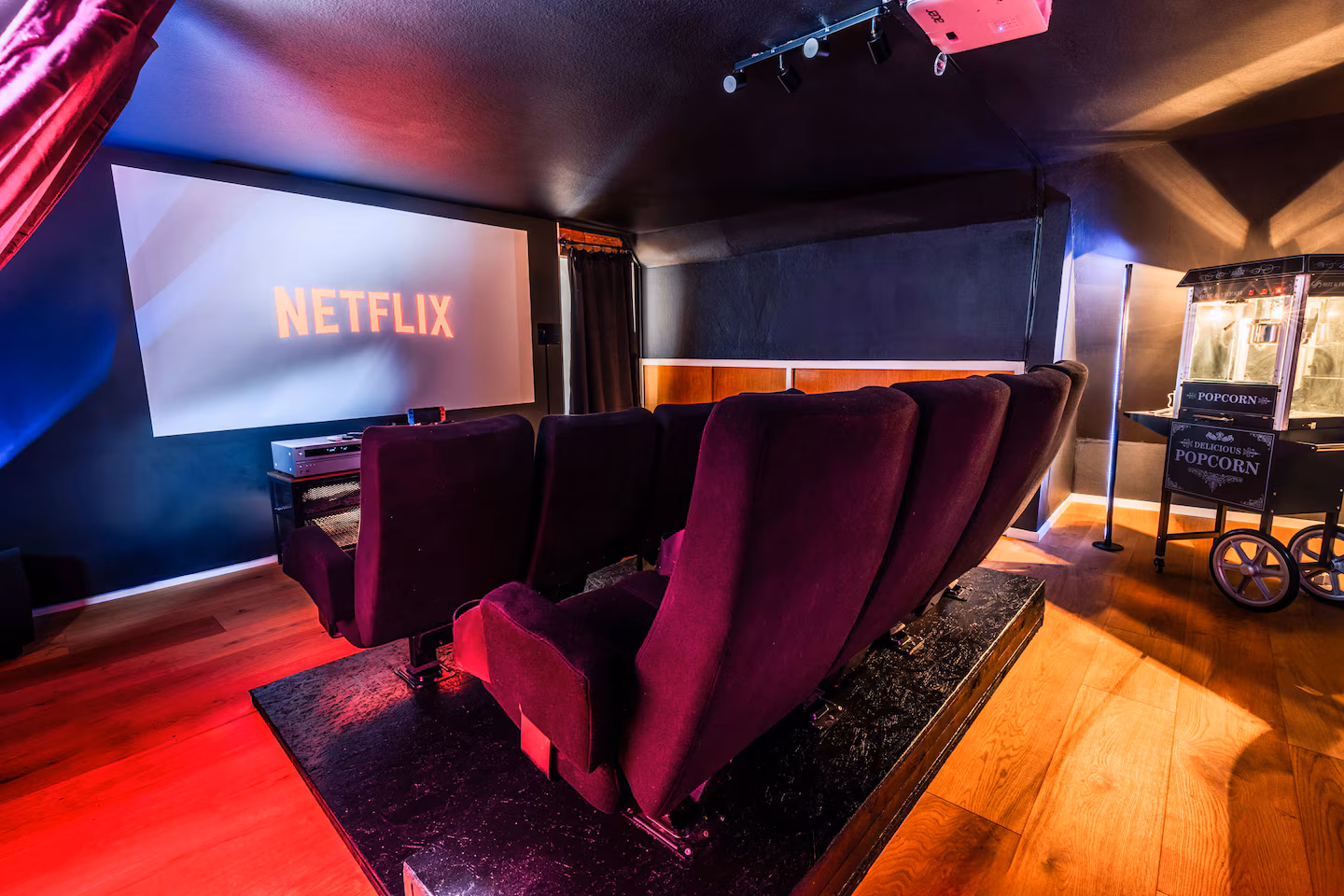 Unser Highlight: Ein eigenes Heimkino mit Kinoleinwand und bequemen Sesseln – perfekt für Filmnächte mit der Gruppe. Gleich nebenan sorgt ein voll ausgestattetes Spielzimmer mit Billardtisch, Kicker und Brettspielen für Abwechslung und gesellige Abende. Ob Action oder Gemütlichkeit – hier kommt jeder auf seine Kosten.