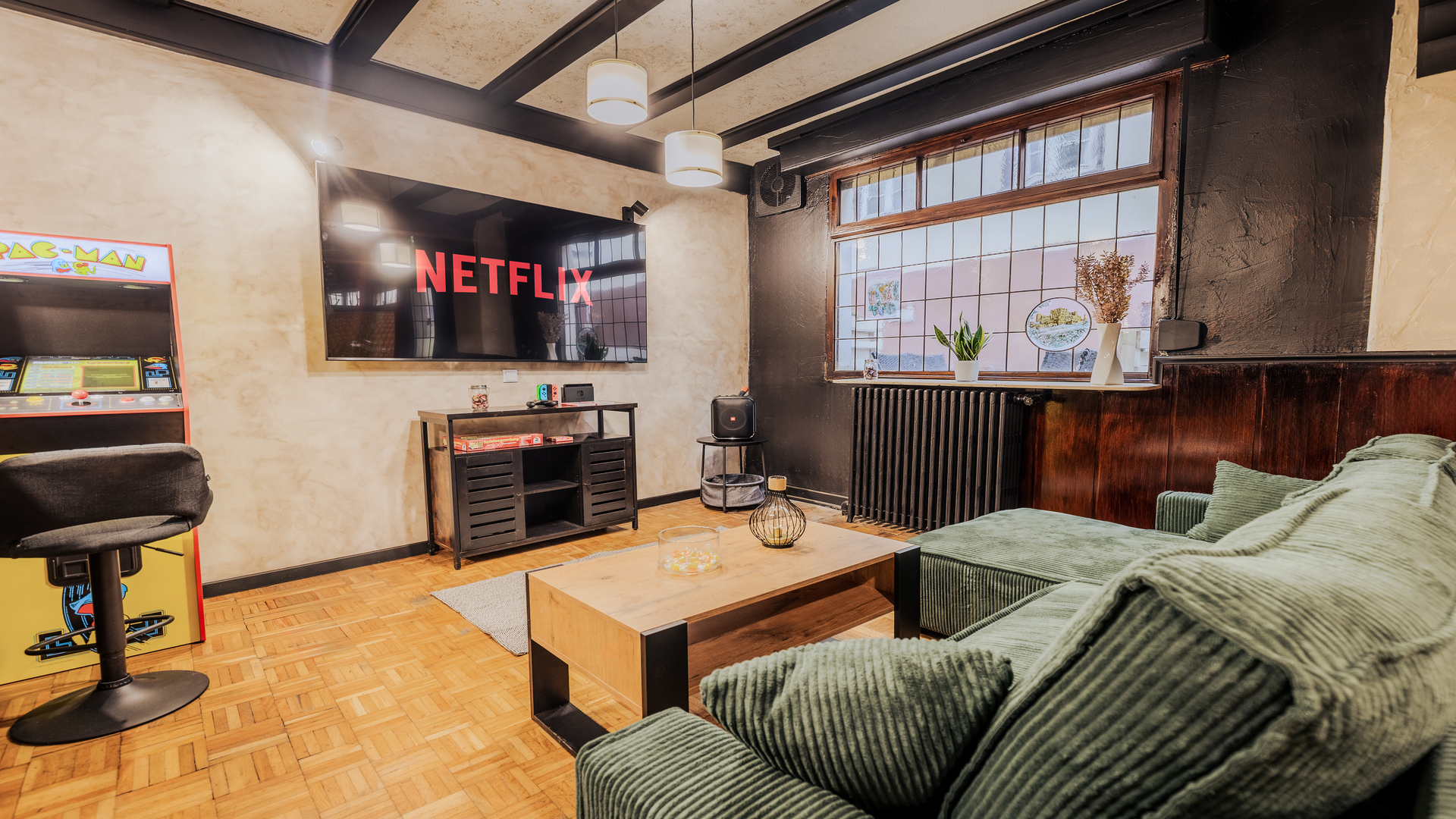 Unser Casino bietet Platz für bis zu 16 Gäste und eignet sich ideal für Familientreffen und große Gruppen. Wie unsere anderen Unterkünfte bietet das Casino viele Unterhaltungsmöglichkeiten, wie einen Indoor-Basketballplatz, ein Heimkino mit originalen Kinosesseln, Kicker, Billardtisch und vieles mehr. Ein Aufenthalt in unserer Unterkunft wird zu einem unterhaltsamen Erlebnis!